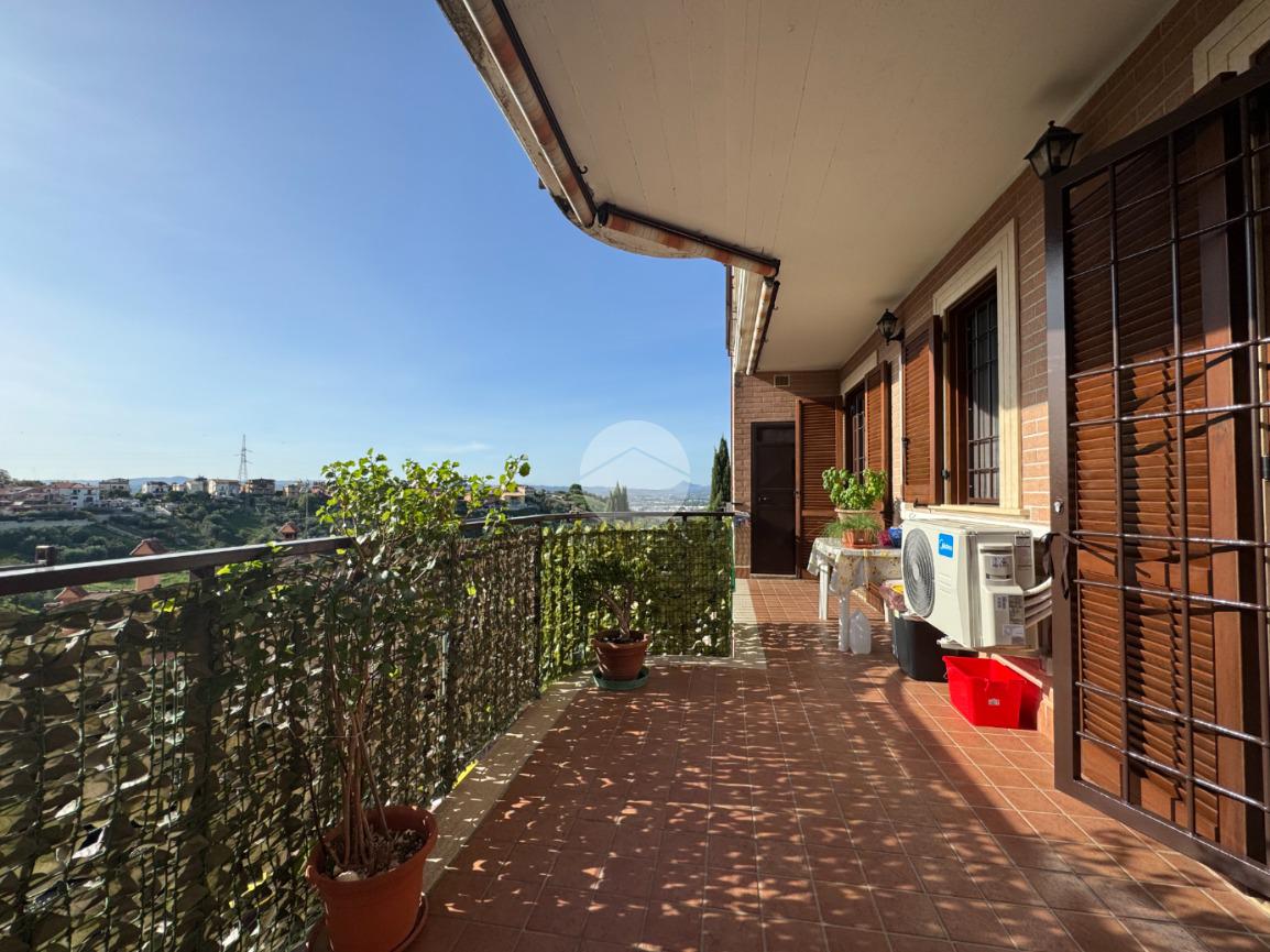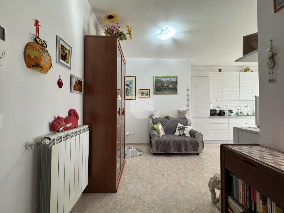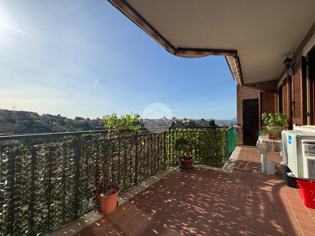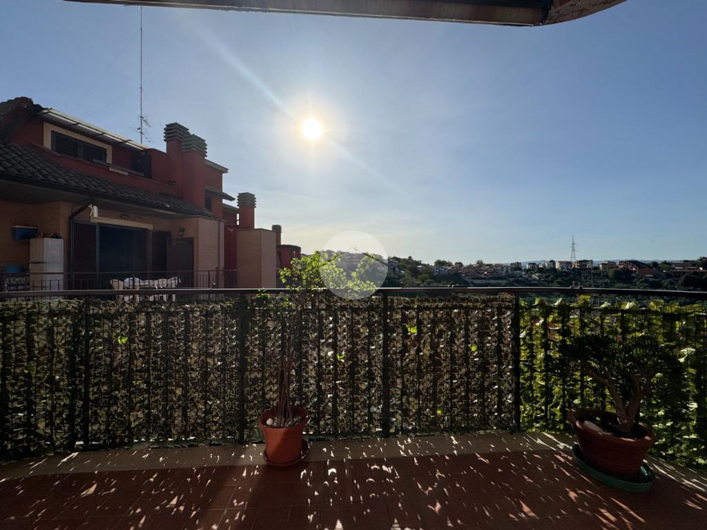L’ingresso conduce a un luminoso soggiorno con cucina a vista, dal quale, tramite una porta finestra, si accede a un ampio terrazzo che gode di una vista panoramica mozzafiato, accessoriato di un pratico locale tecnico.