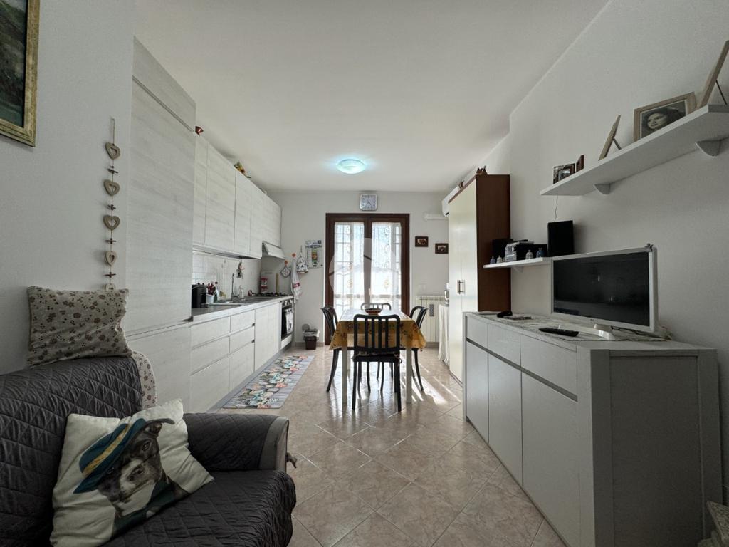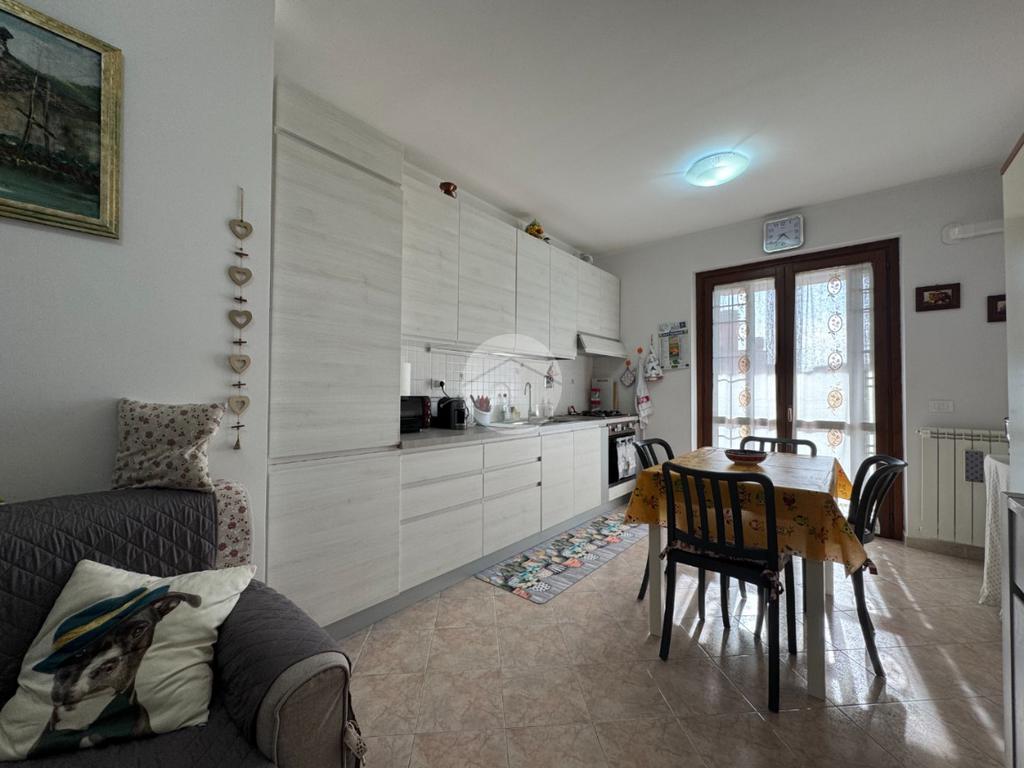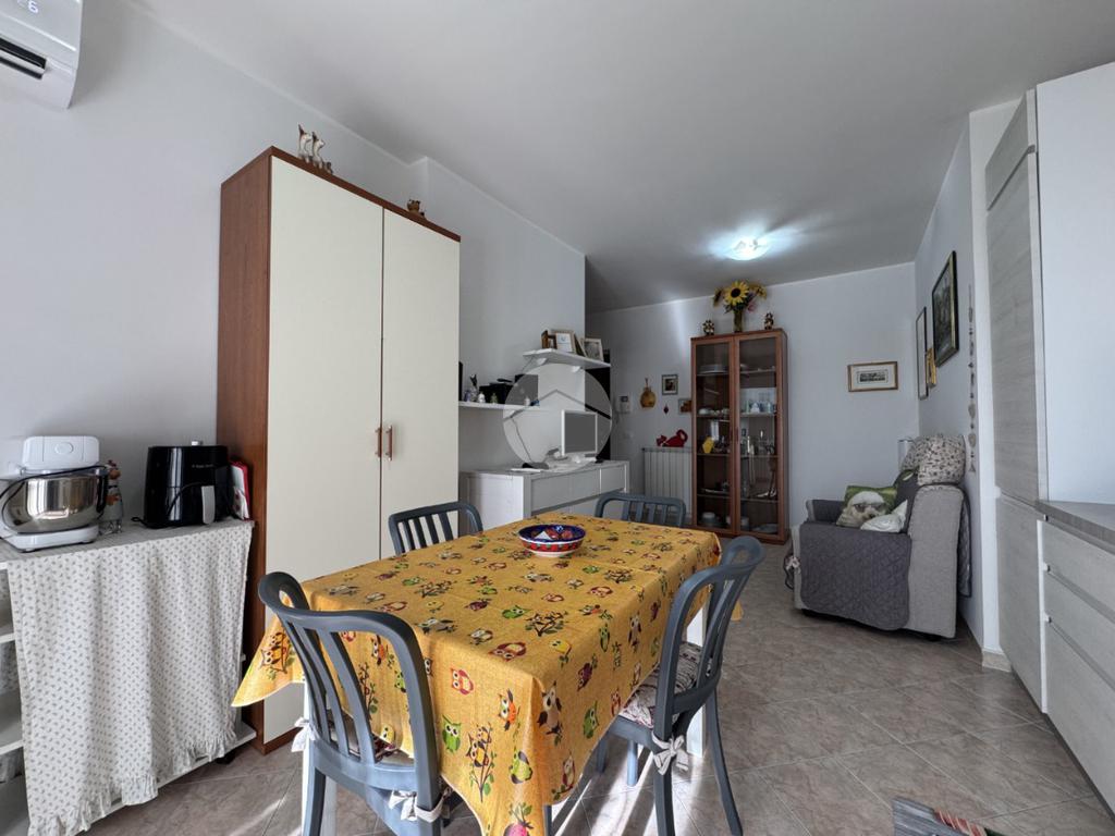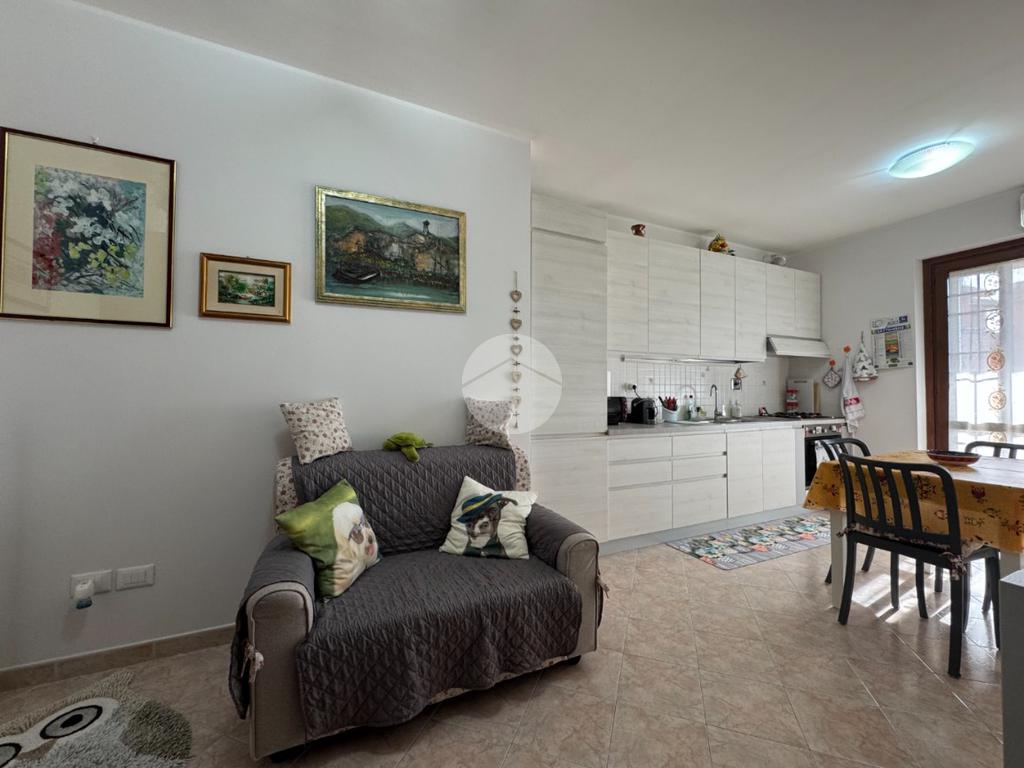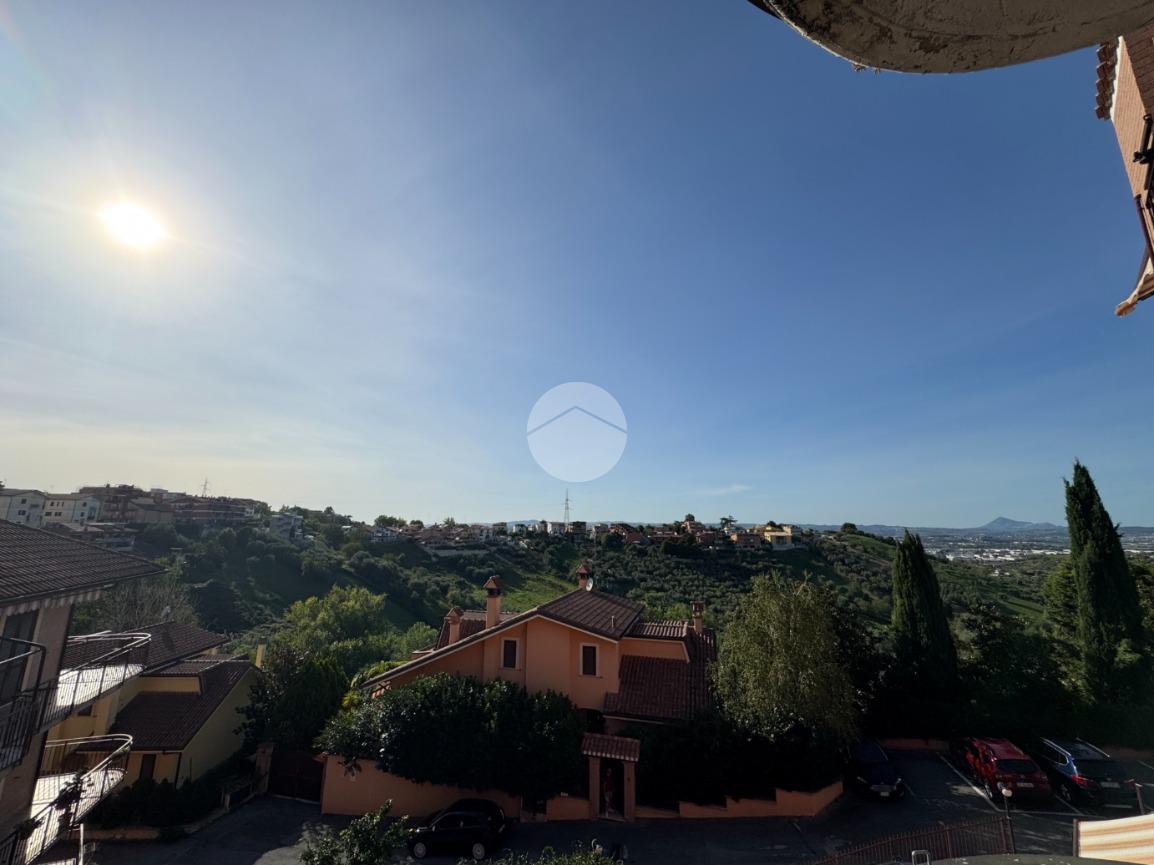 L’ingresso conduce a un luminoso soggiorno con cucina a vista, dal quale, tramite una porta finestra, si accede a un ampio terrazzo che gode di una vista panoramica mozzafiato, accessoriato di un pratico locale tecnico.