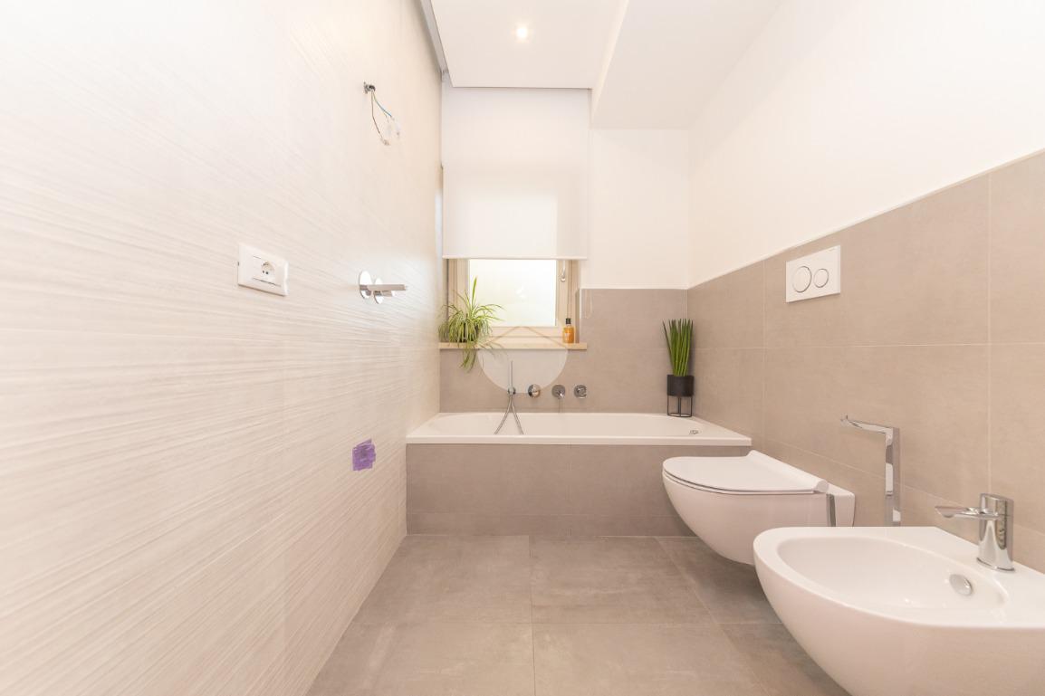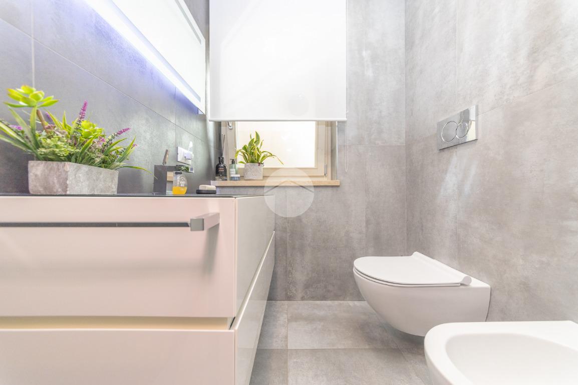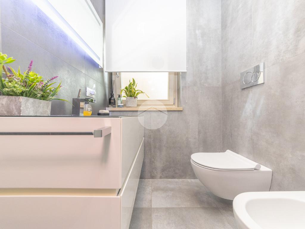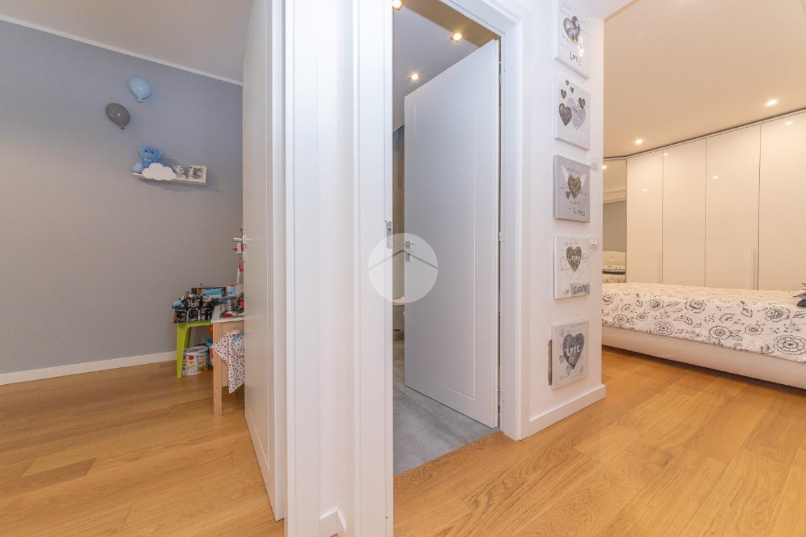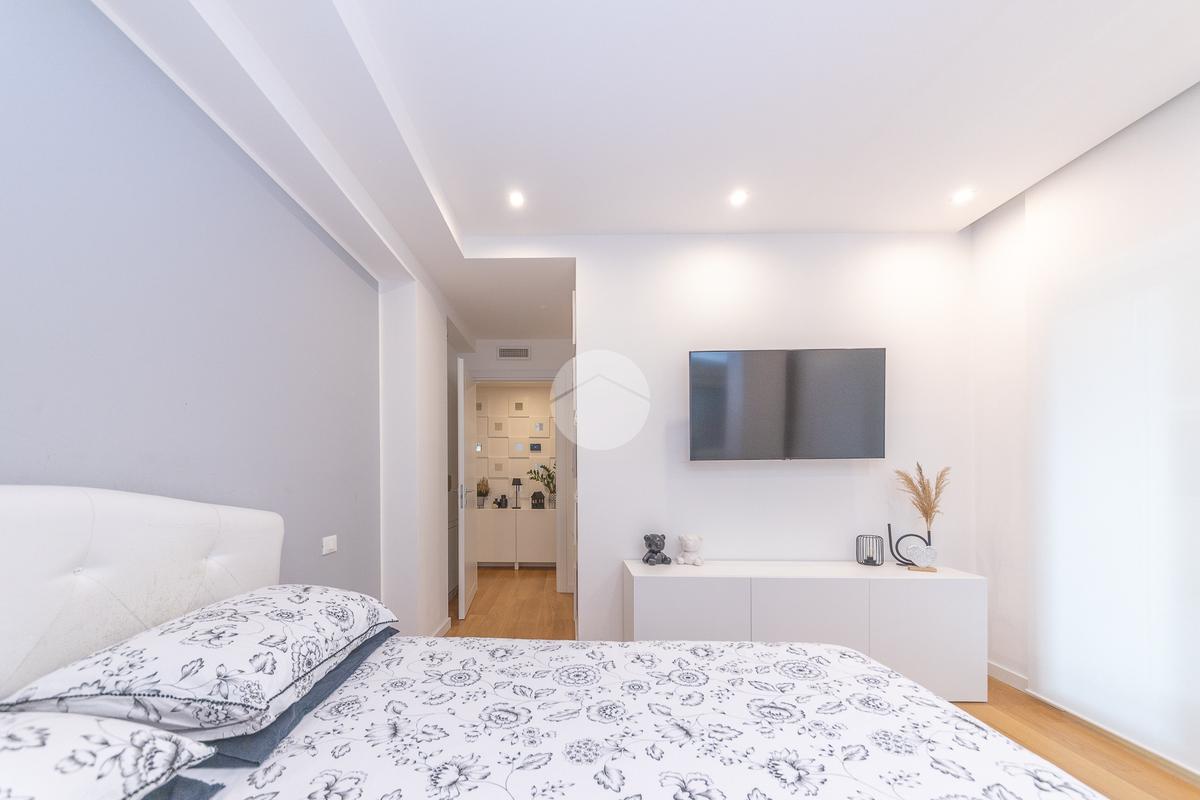 Un disimpegno, divide la zona giorno dalla zona notte, composta da tre camere da letto matrimoniali, ciascuna con accesso diretto al terrazzo, accessoriato di locale tecnico con predisposizione per lavatrice esterna e boiler dell’acqua da 200L e due servizi finestrati di cui uno en suite completo di box doccia in cristallo e rubinetteria GESSI, l’altro dotato di vasca (Villeroy & Boch) , sanitari Catalano e rubinetteria Bellosta. Le porte interne Flessya in legno lavorato impreziosiscono ulteriormente l’immobile.