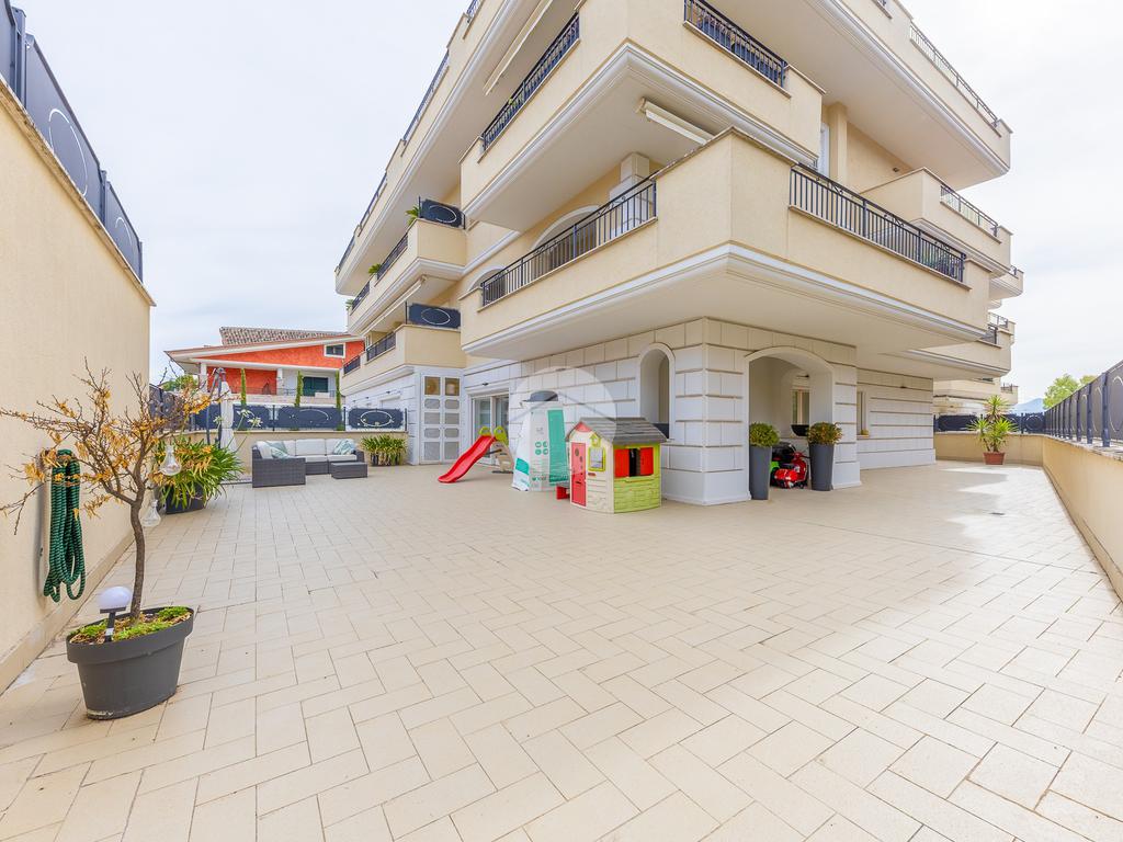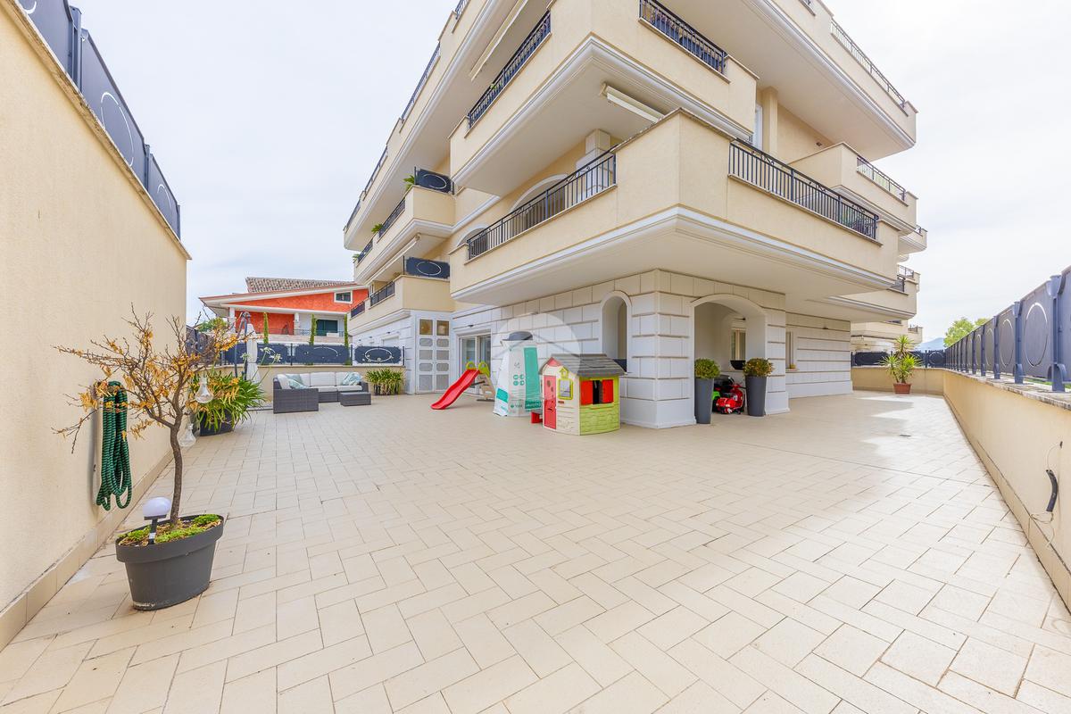 In uno dei residence più esclusivi di Monterotondo (Palmer), nella zona dei Cappuccini, proponiamo in vendita un elegante quadrilocale di 105 mq, Situato al piano terra di una elegante palazzina del 2016, dispone di un triplo accesso, pedonale, carrabile e indipendente dal terrazzo privato di circa 200 mq.