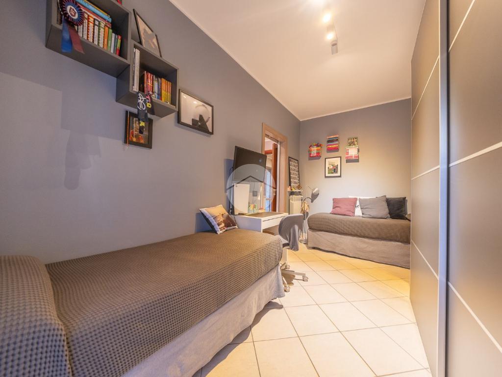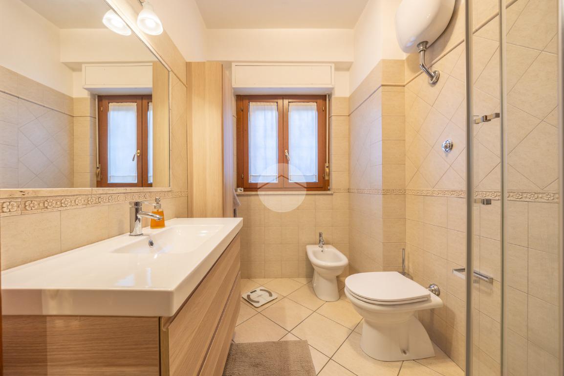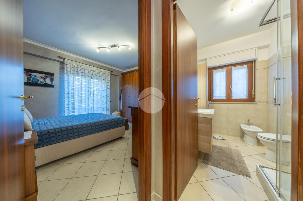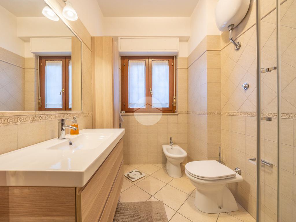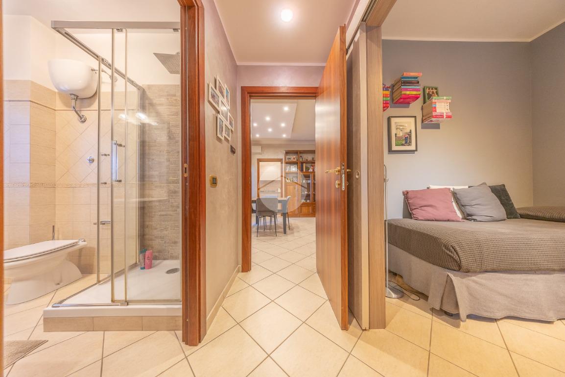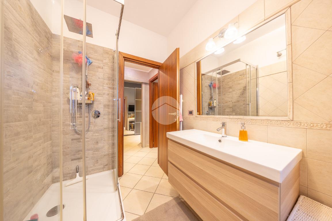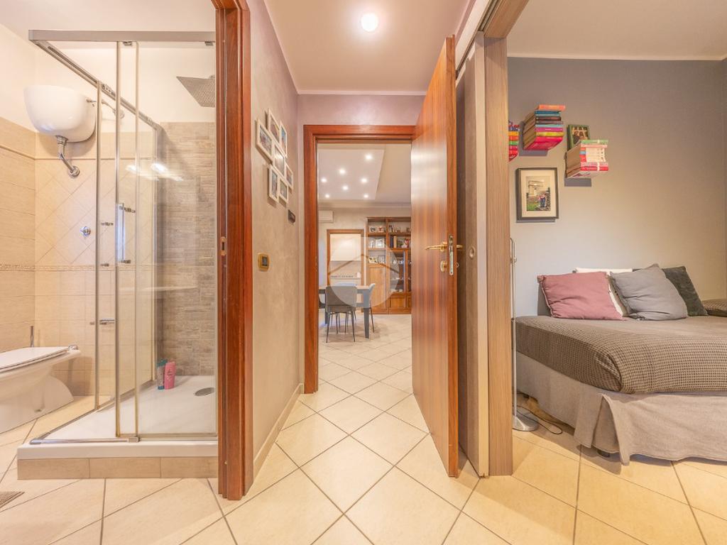 Un disimpegno divide la zona giorno dalla zona notte, completa di due camere matrimoniali dal quale è possibile accedere al terrazzo principale, e un servizio finestrato con box doccia.