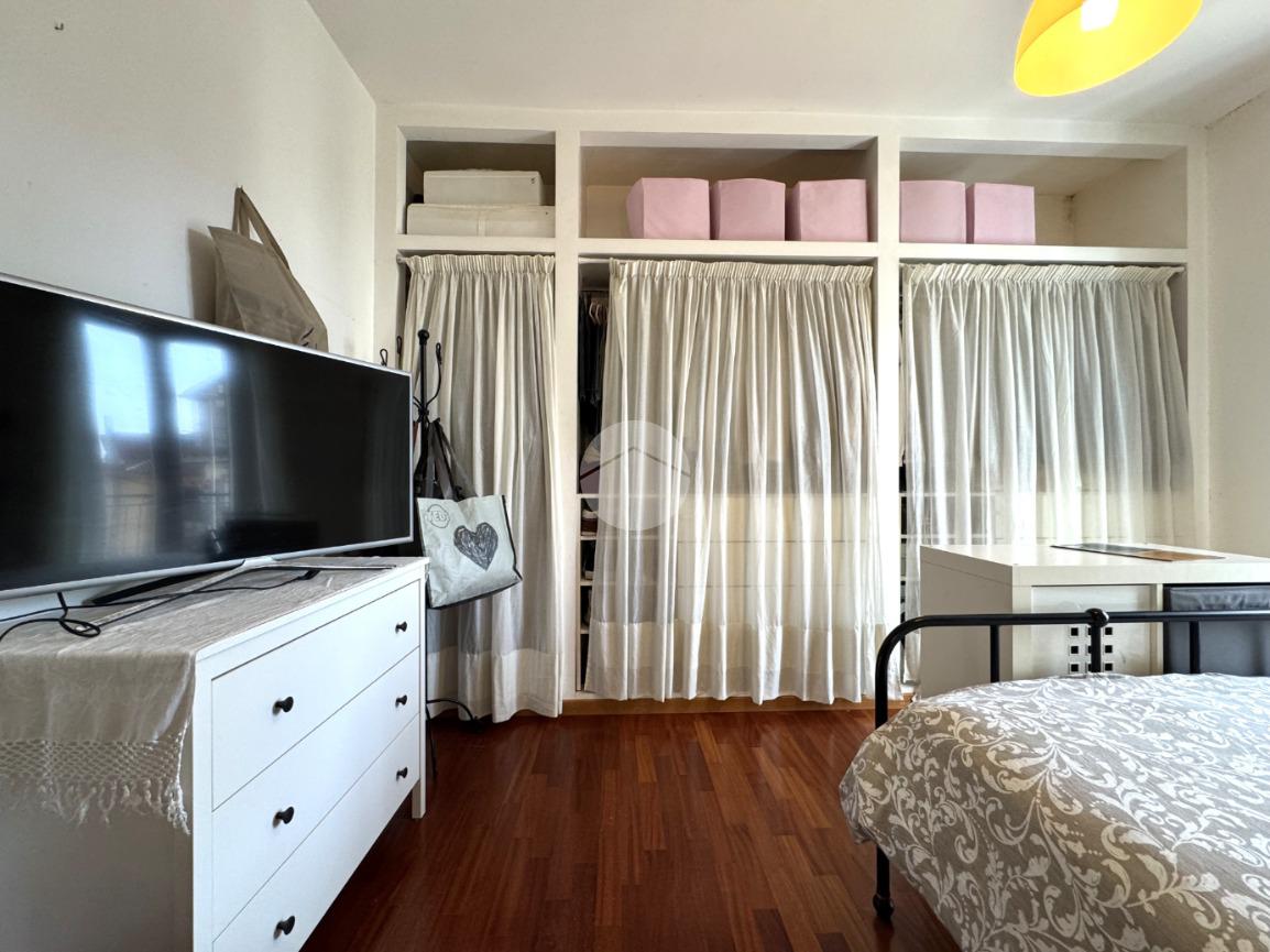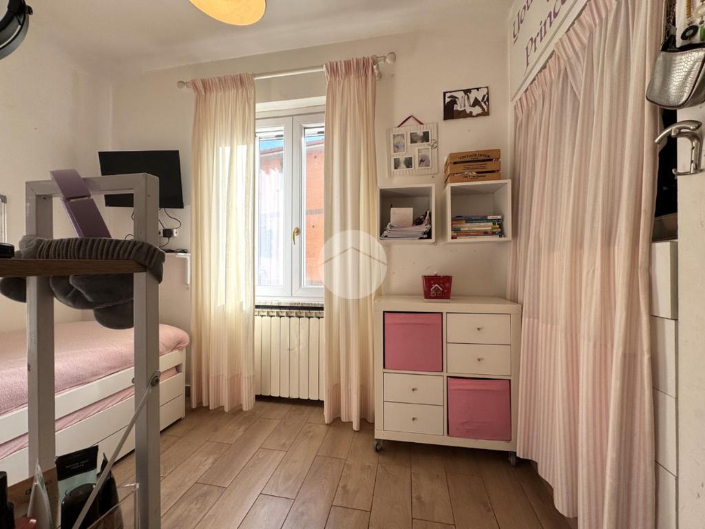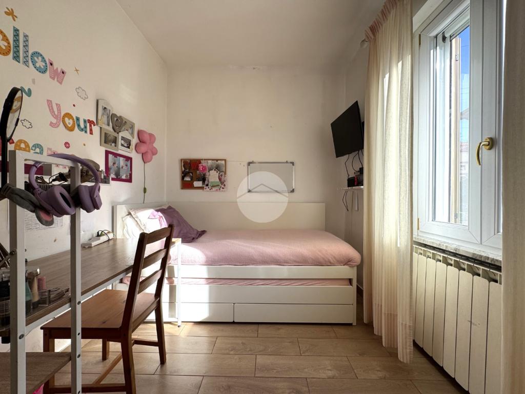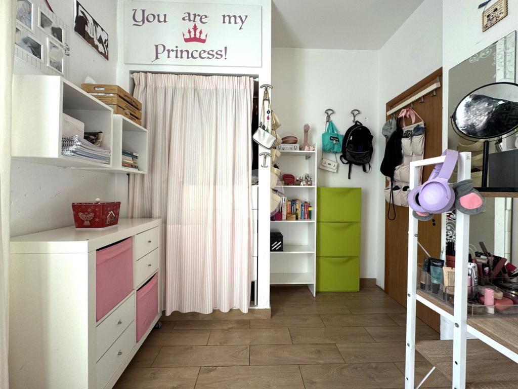 La zona notte, ben distribuita, è composta da una camera matrimoniale con balcone privato, due camerette, un pratico ripostiglio e due servizi: uno finestrato, dotato di vasca e soppalco, l’altro completo di box doccia.