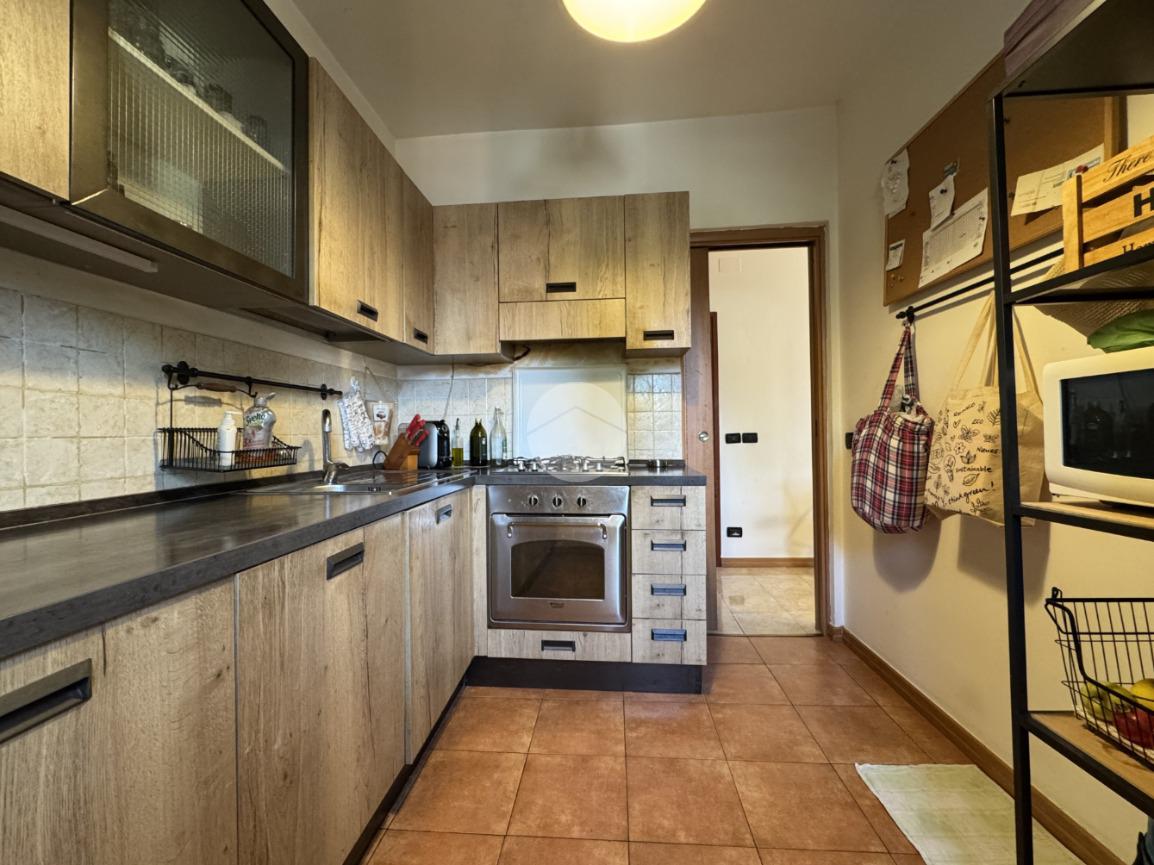 L'ingresso si apre su un disimpegno che ci conduce ad un ampio e luminoso soggiorno valorizzato da una porta finestra, dal quale è possibile accedere direttamente al balcone, adiacente alla zona living si sviluppa una spaziosa cucina abitabile, illuminata da una graziosa finestra.
