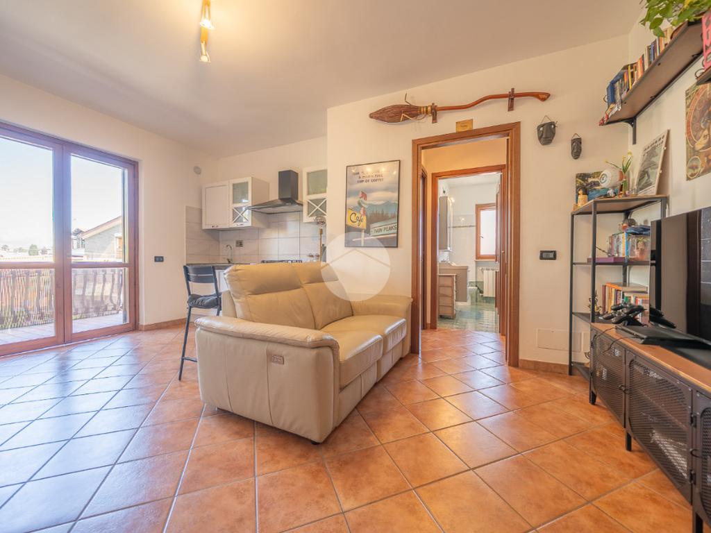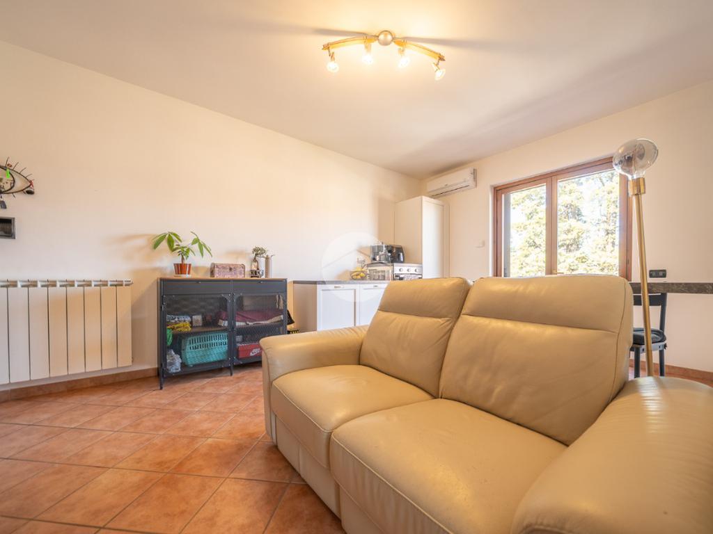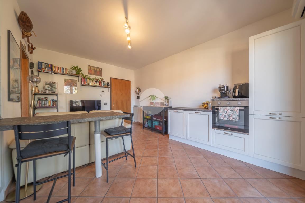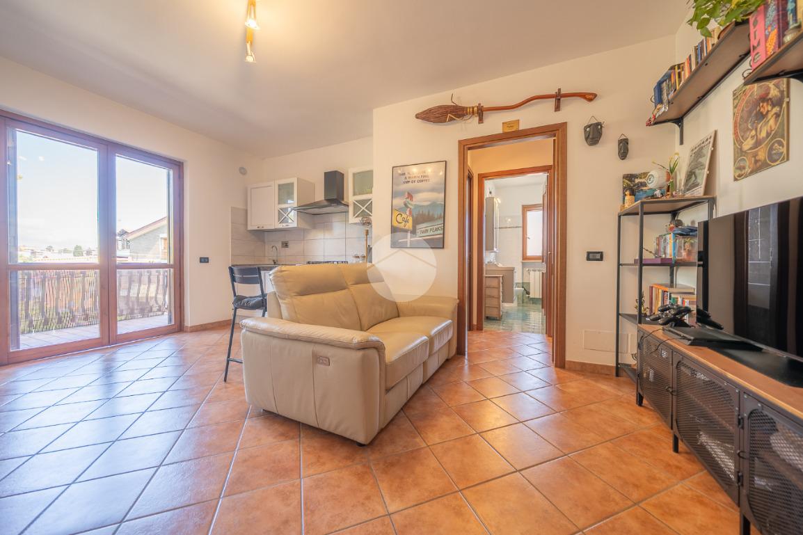 L’ingresso si apre su un luminoso soggiorno con cucina a vista, un ambiente accogliente e funzionale che conduce direttamente ad un ampio balcone abitabile, completo di locale tecnico, che offre una piacevole vista sul verde che dona privacy e serenità.