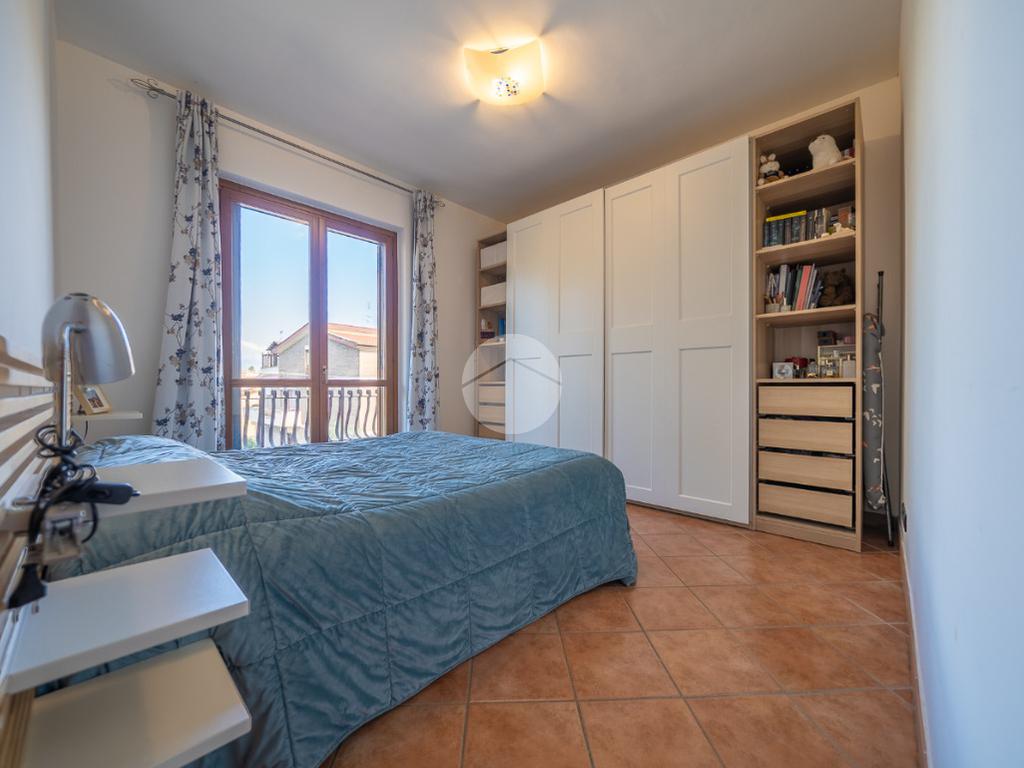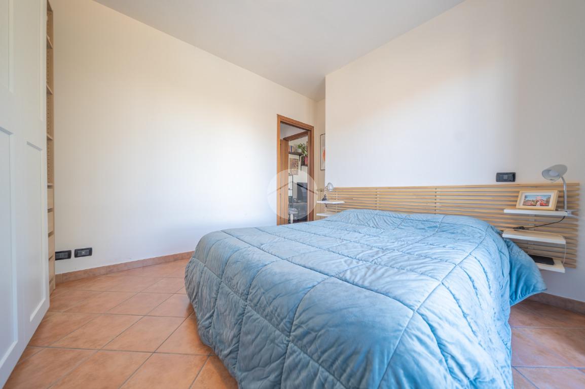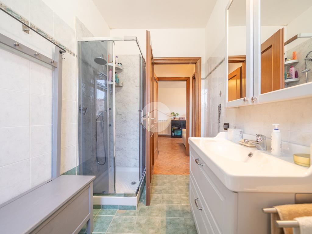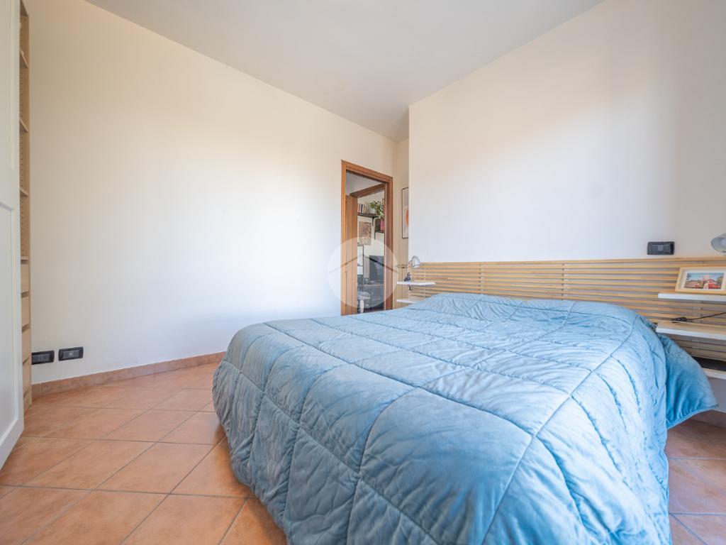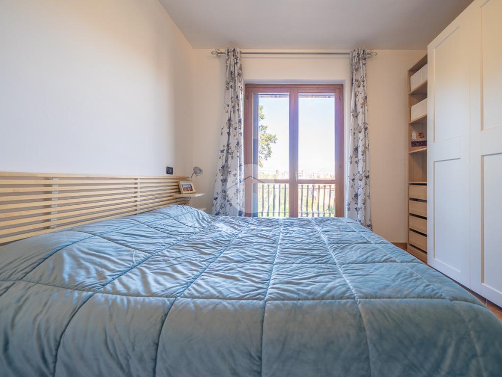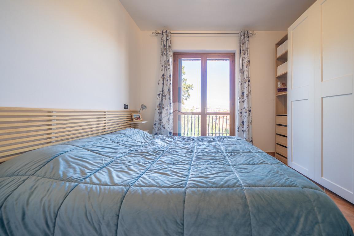 Proseguendo, un disimpegno ci accompagna alla zona notte della soluzione, composta da una spaziosa camera da letto matrimoniale, anch’essa con accesso diretto al balcone, e da un bagno finestrato dotato di box doccia.