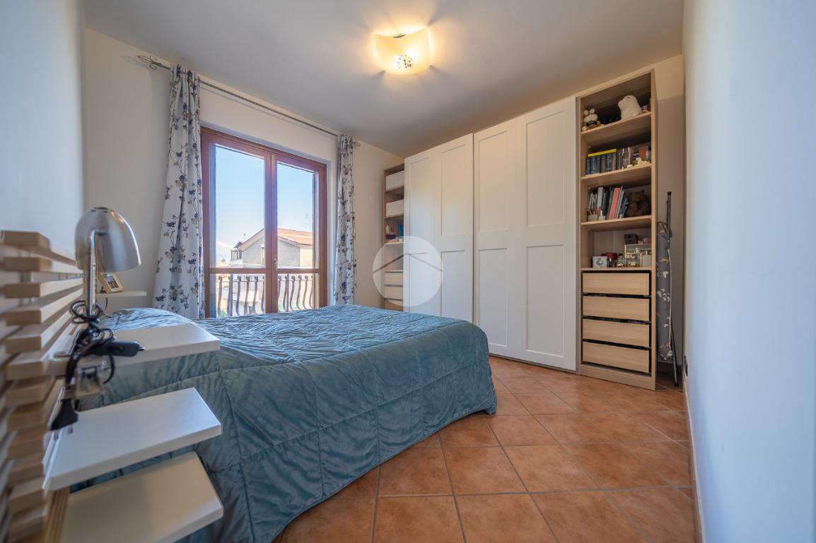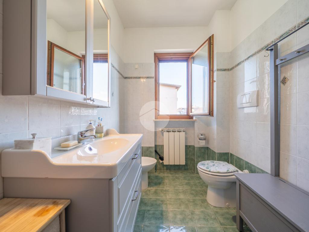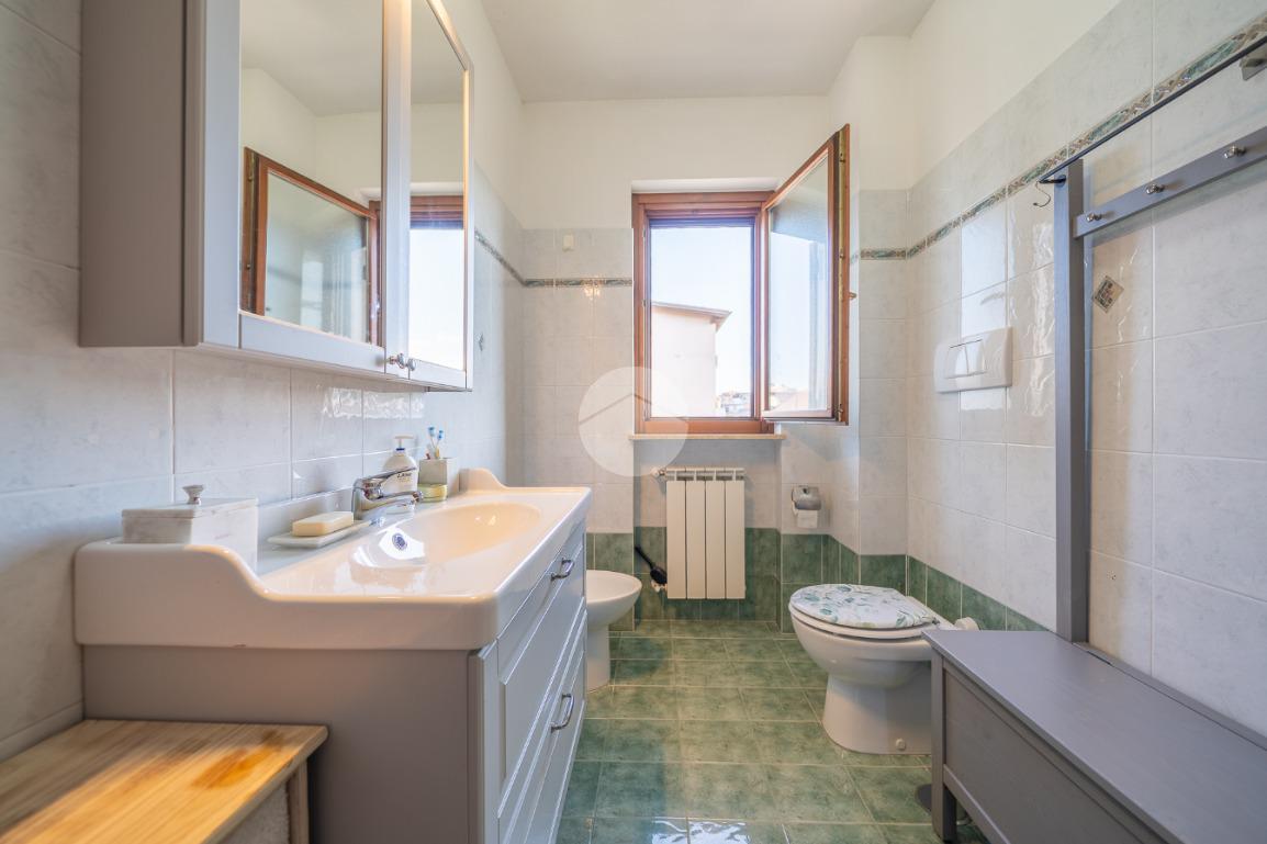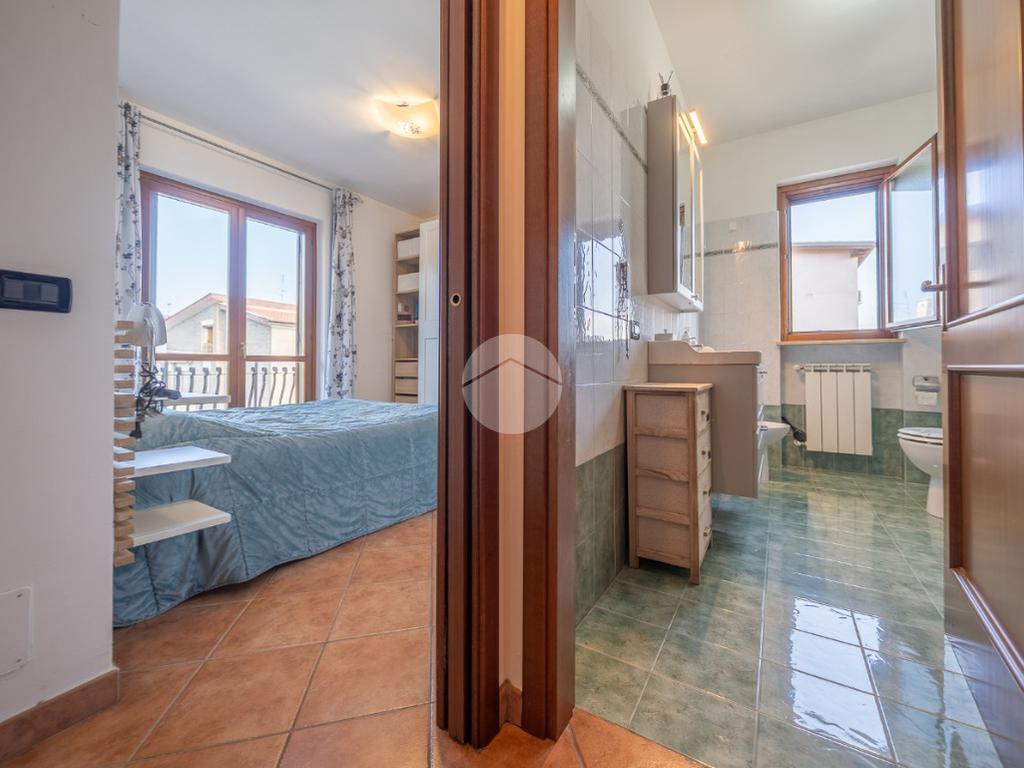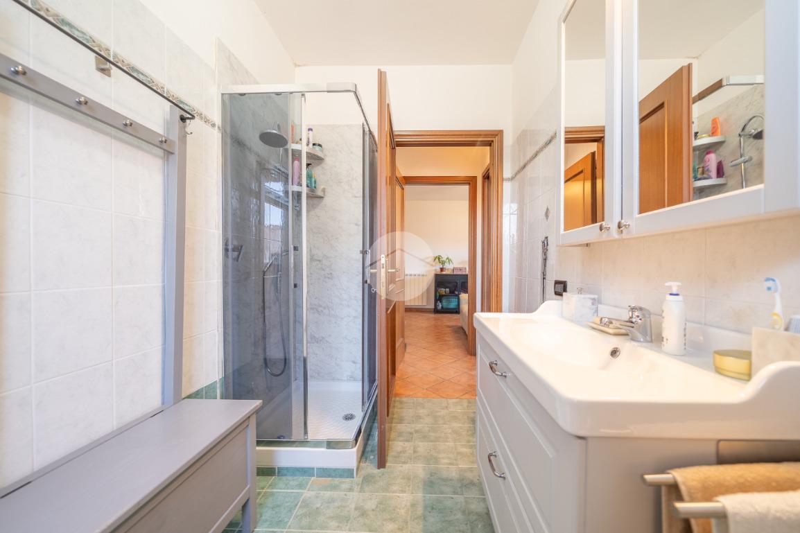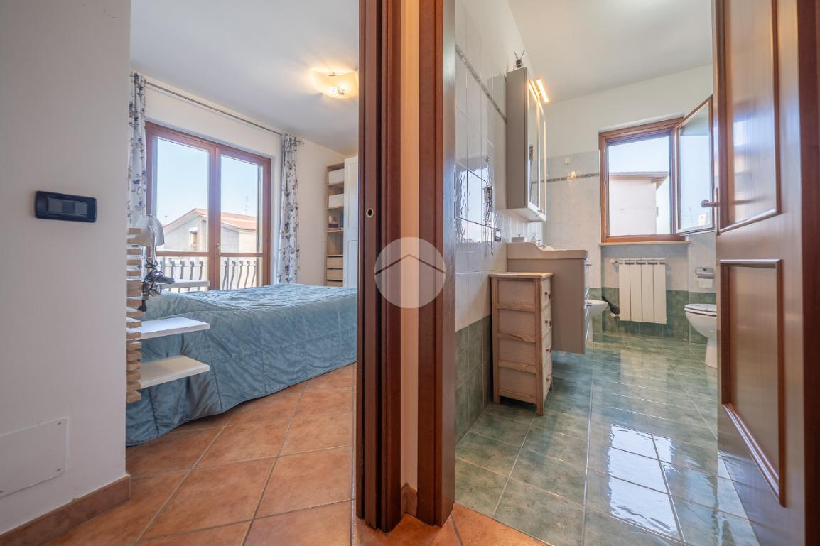 Proseguendo, un disimpegno ci accompagna alla zona notte della soluzione, composta da una spaziosa camera da letto matrimoniale, anch’essa con accesso diretto al balcone, e da un bagno finestrato dotato di box doccia.