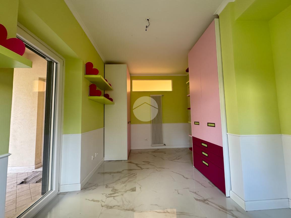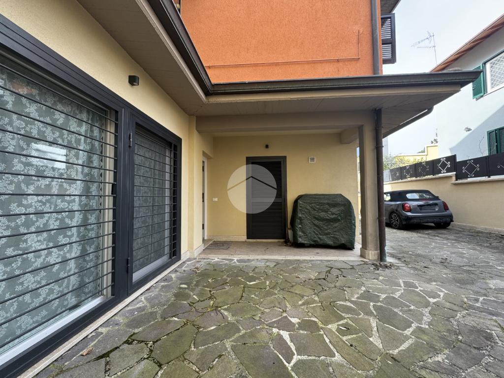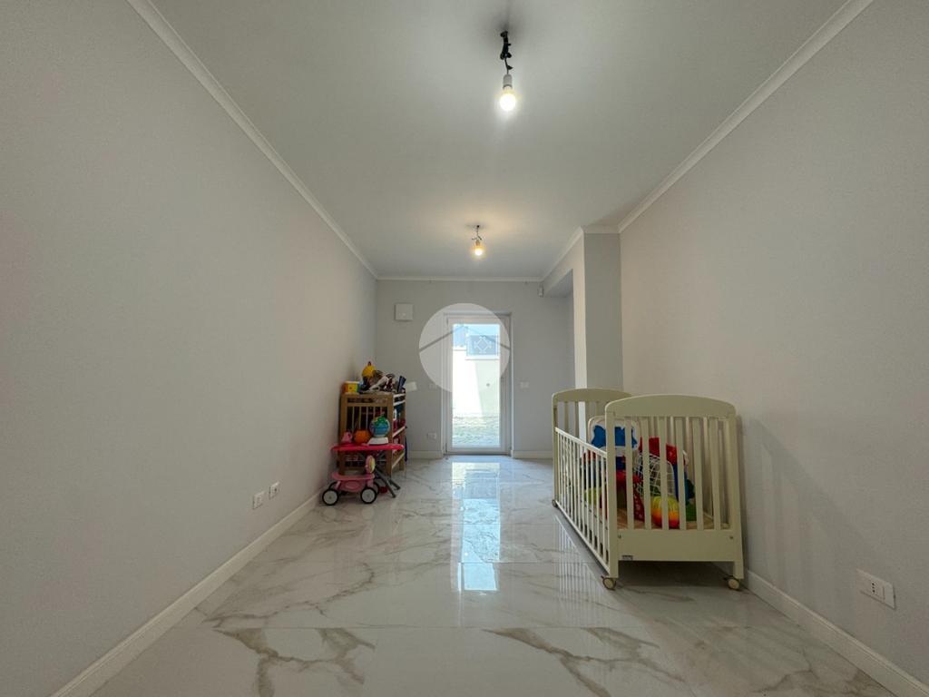 L’appartamento dispone di doppio ingresso, sia da Via XX Settembre che da Via Olimpia, con cancello elettrico automatizzato e due accessi pedonali, garantendo praticità e indipendenza. Tra le dotazioni troviamo inoltre infissi in doppio vetro con apertura vasistas, persiane, zanzariere, impianto d’allarme, predisposizione per impianto fotovoltaico e ricarica per auto elettrica.