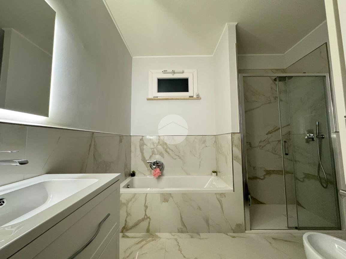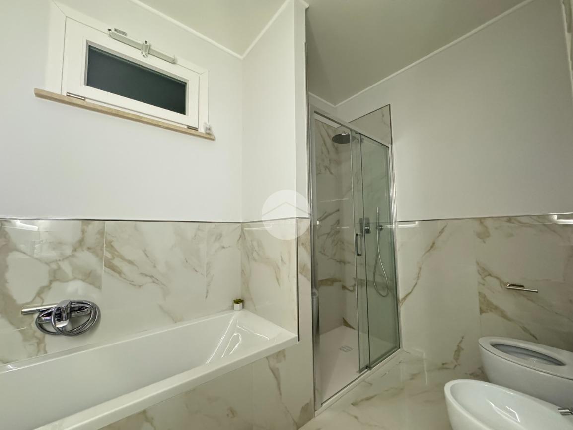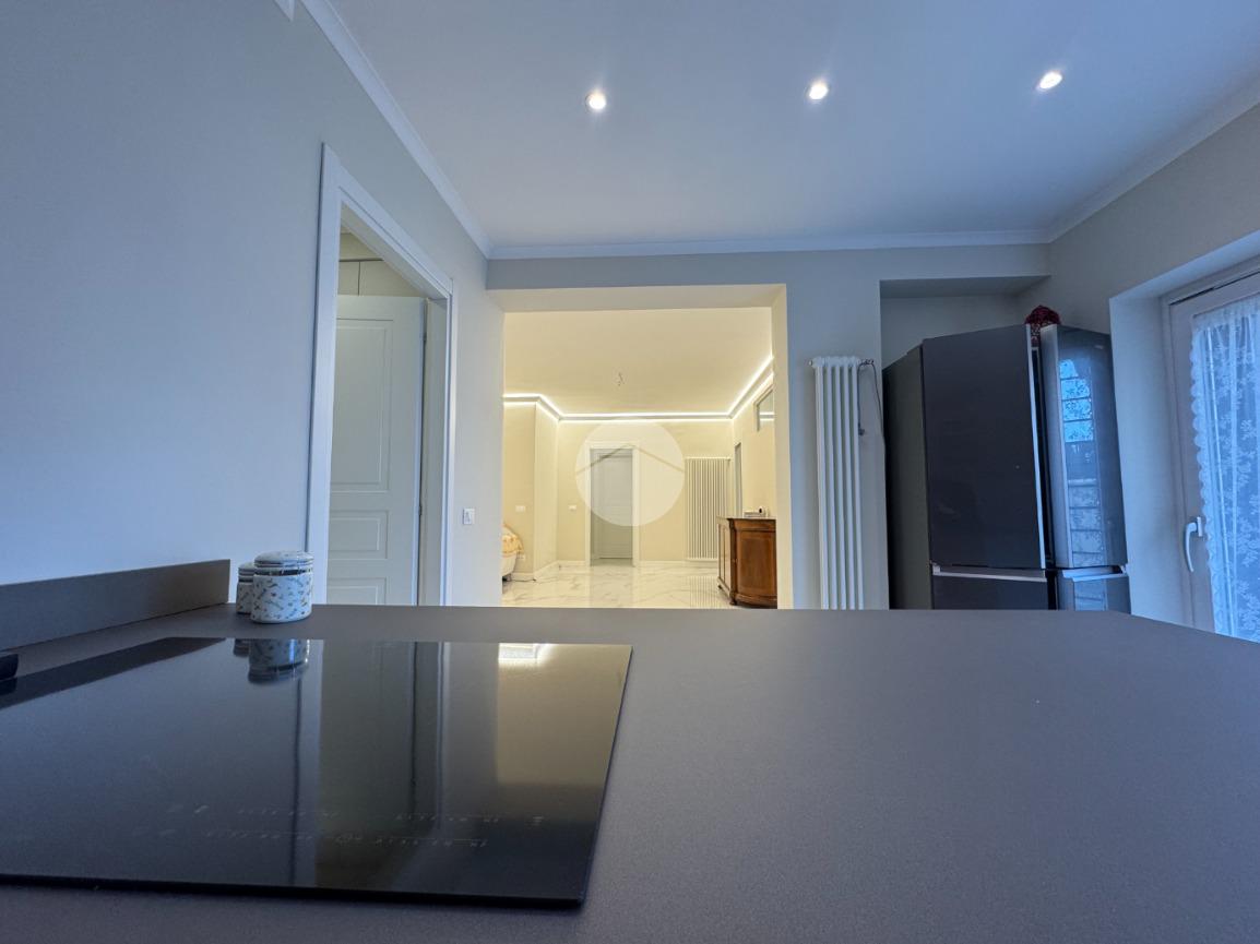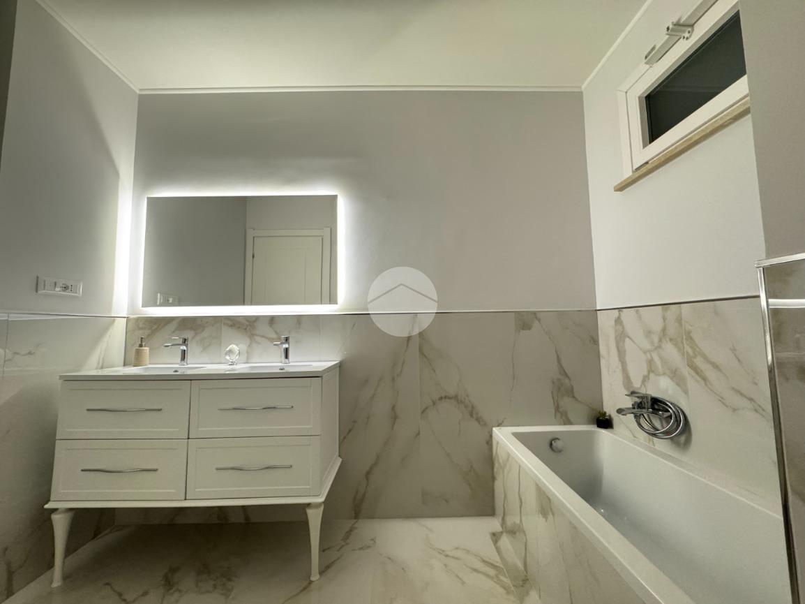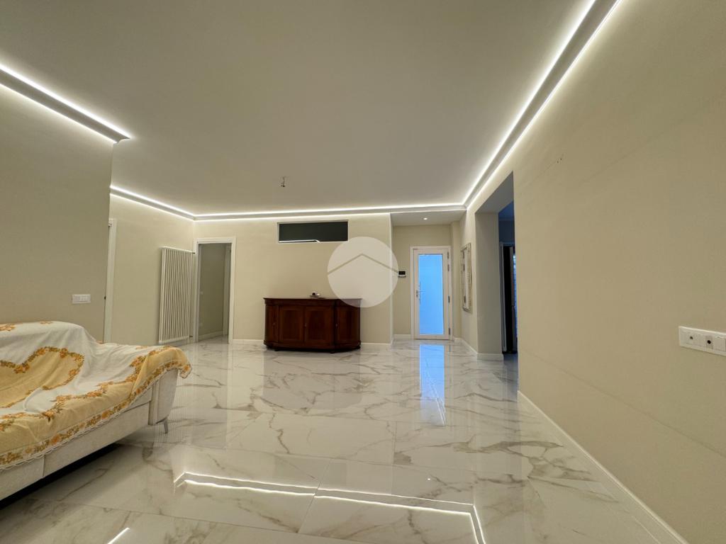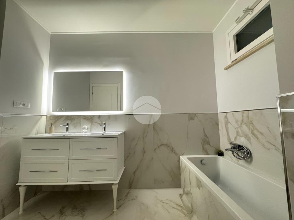 L’immobile si sviluppa su una superficie di circa 160 mq ed è stato oggetto di una ristrutturazione completa che ha valorizzato ogni ambiente con materiali di qualità e soluzioni contemporanee. Gli eleganti rivestimenti in grès effetto marmo, le linee pulite e l’illuminazione studiata donano agli spazi un’atmosfera raffinata e accogliente.