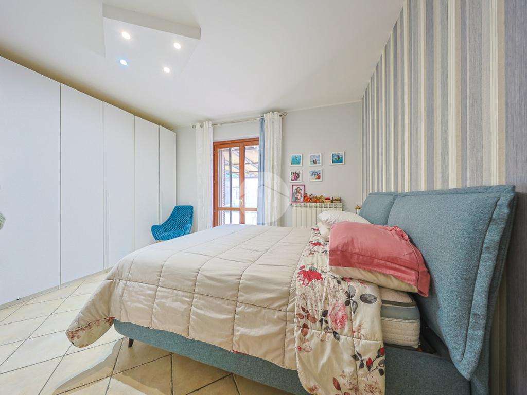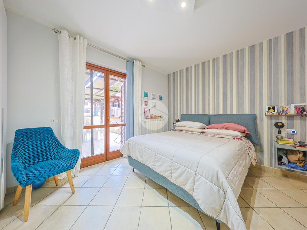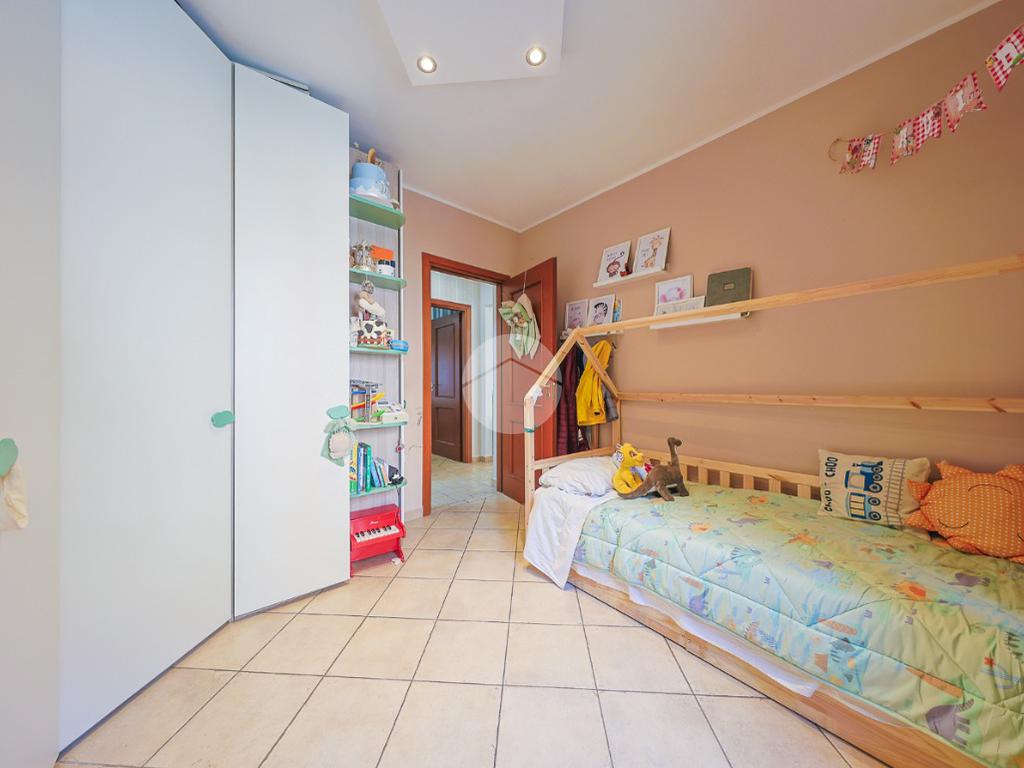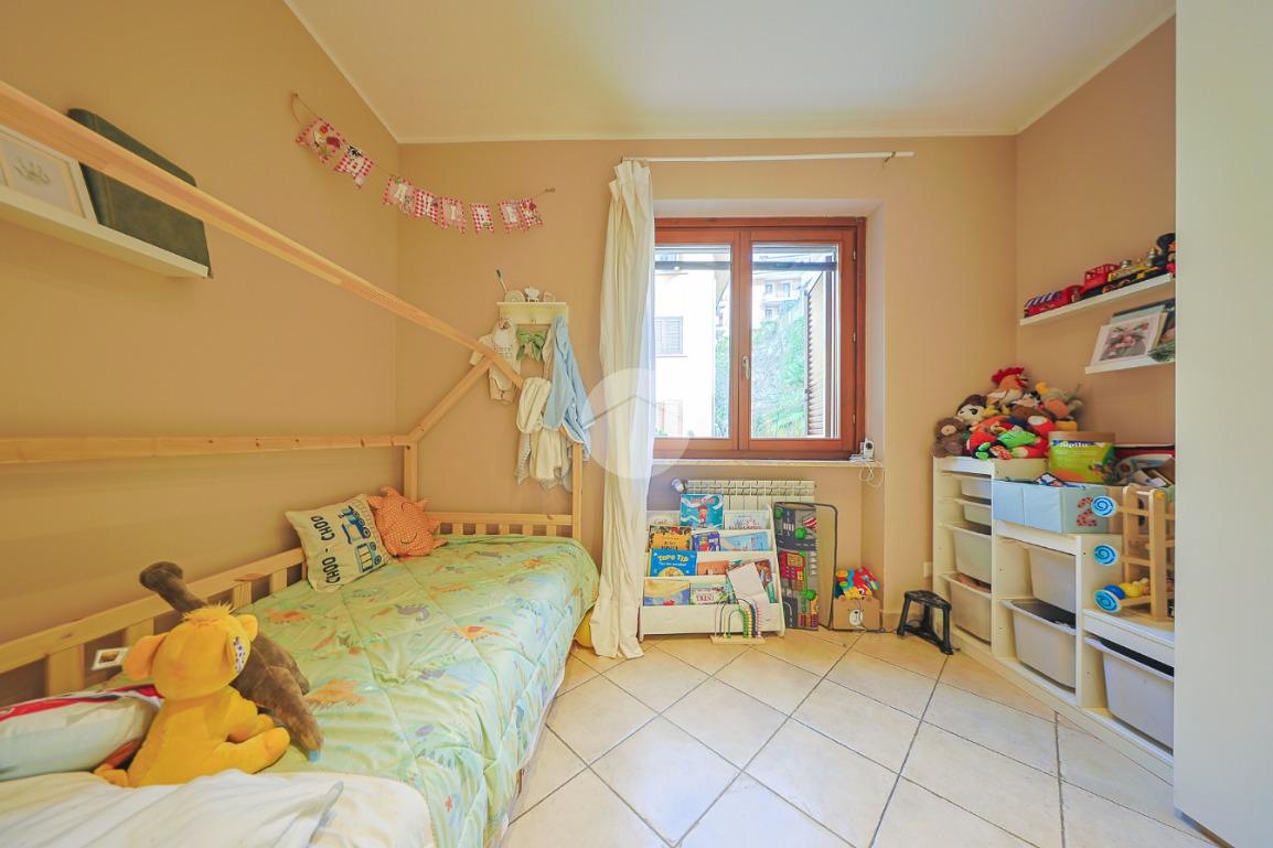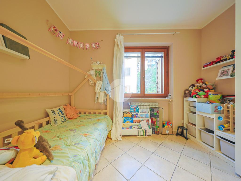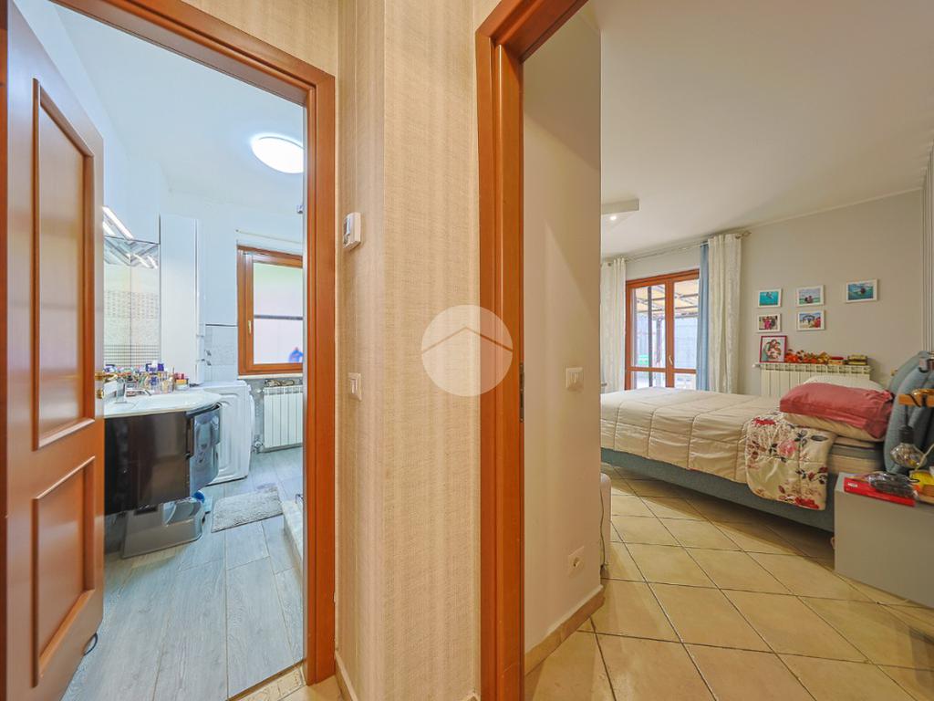 Un comodo disimpegno separa la zona giorno dalla zona notte, composta da una luminosa cameretta, una confortevole camera matrimoniale, anch’essa con accesso diretto allo spazio esterno e un bagno finestrato completo di box doccia.