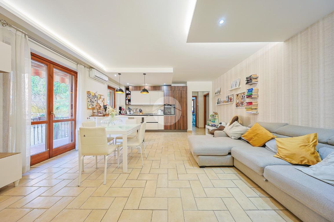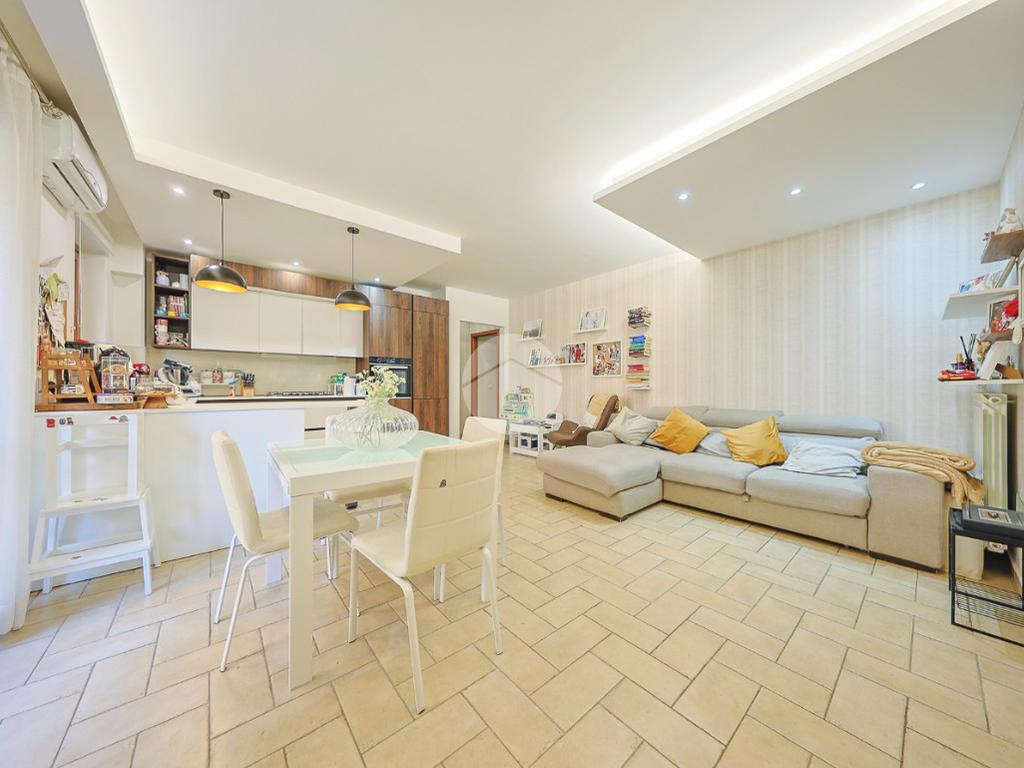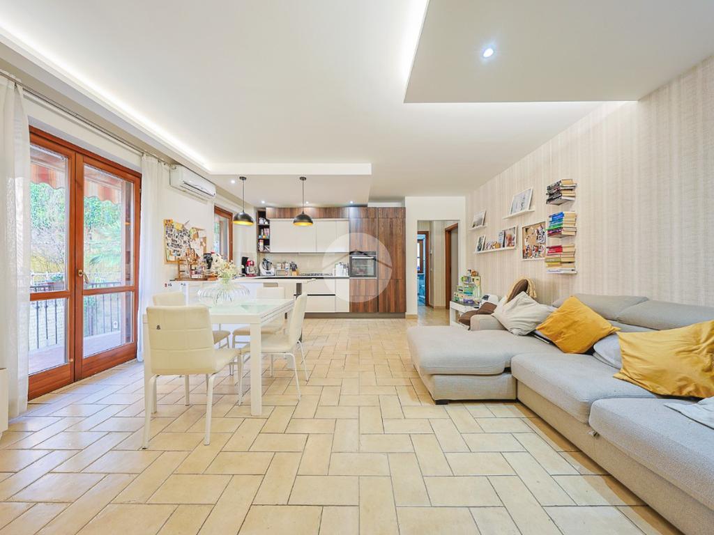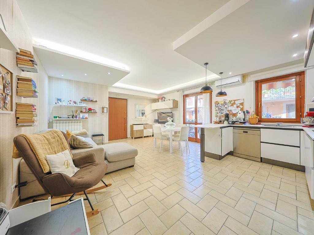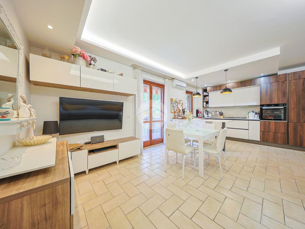 L’ingresso si apre su una spaziosa zona living caratterizzata da un’atmosfera contemporanea e da una straordinaria luminosità naturale. Il soggiorno, con cucina a vista dal design moderno, rappresenta uno spazio accogliente e funzionale. Da qui, tramite una porta finestra, si accede a un primo balcone collegato direttamente alla zona giorno; questo balcone funge da passaggio verso il vero punto di forza della proprietà: un ampio terrazzo arricchito da un grazioso giardinetto e da un gazebo, ideale per trascorrere momenti di relax all’aria aperta.