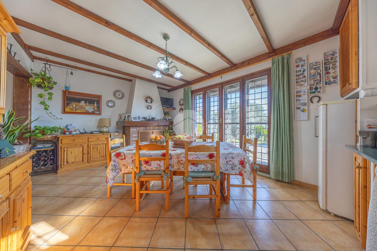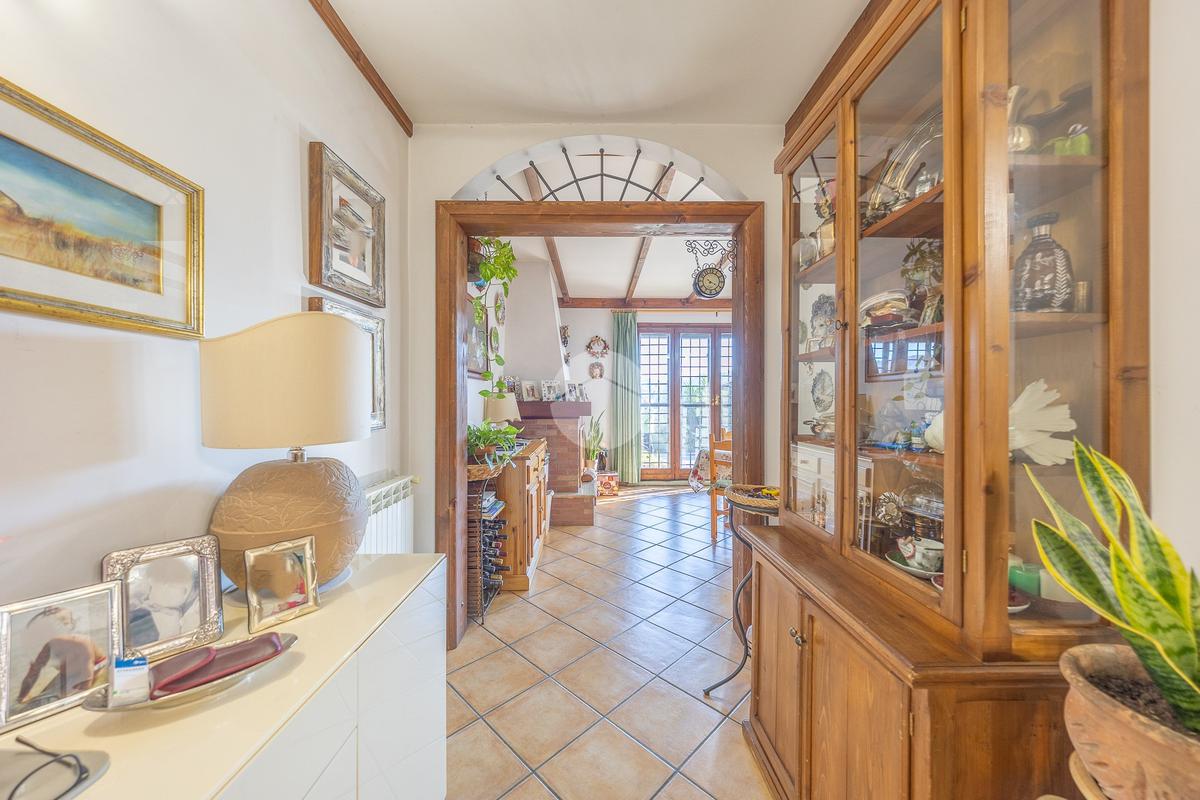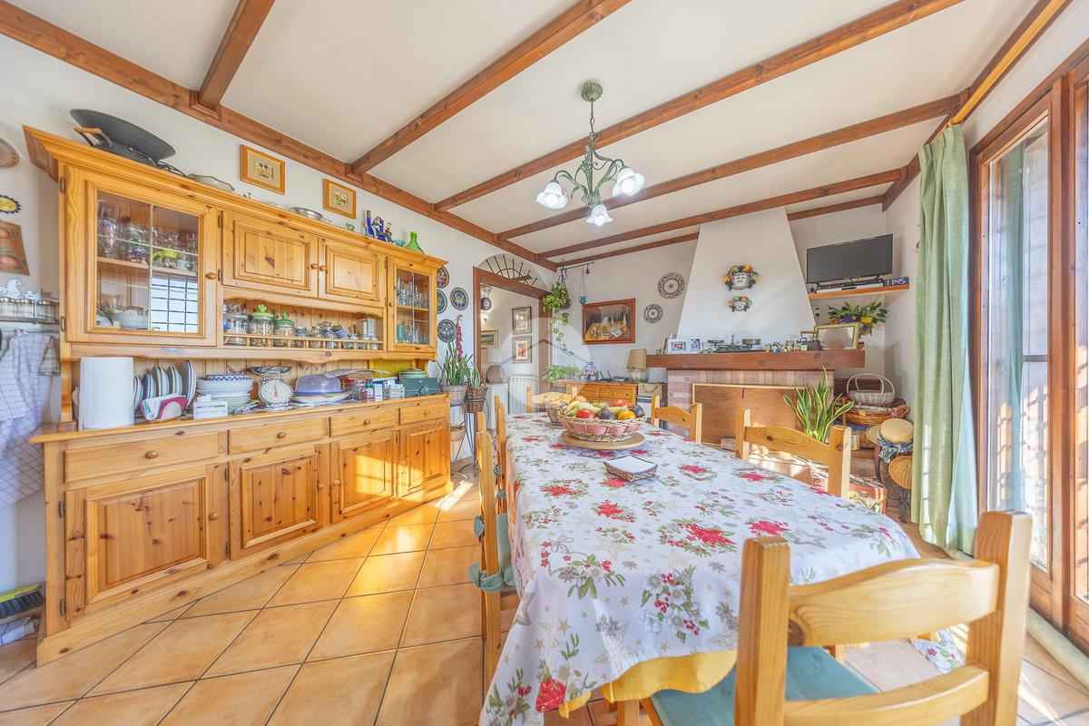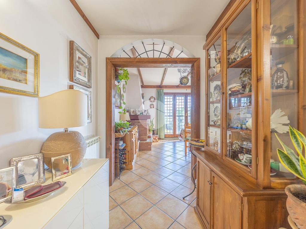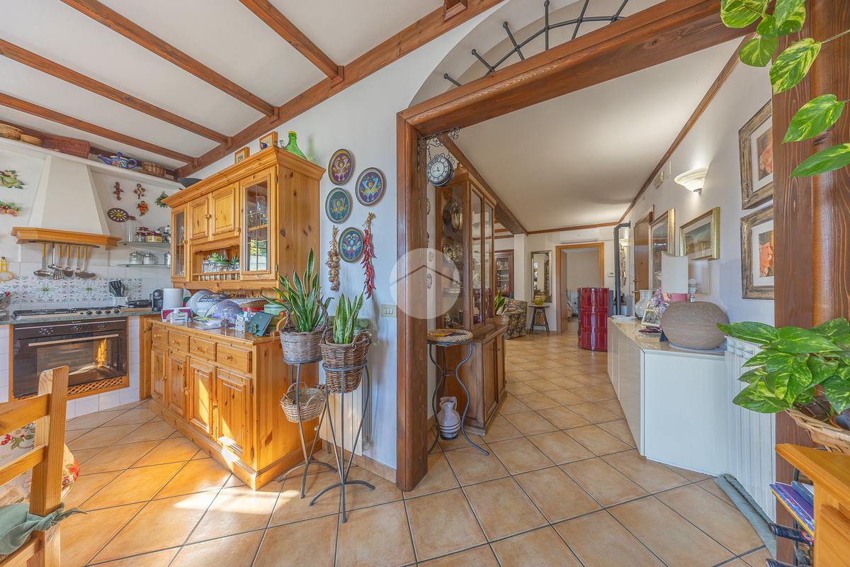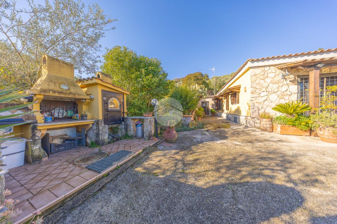 Un piccolo disimpegno del soggiorno conduce alla spaziosa cucina abitale, valorizzata da un suggestivo camino, grazie a una porta finestra, l’ambiente gode di un’ottima luminosità e di una vista mozzafiato sul verde circostante e ci permette di accedere direttamente alla corte esterna e all’ampio terreno di circa 2750 mq. Lo spazio all’aperto, è attrezzato con due forni a legna, un angolo barbecue, un cucinotto e un pratico gazebo ideale per momenti conviviali all’aria aperta.