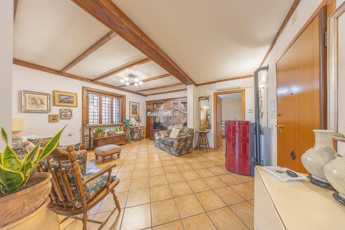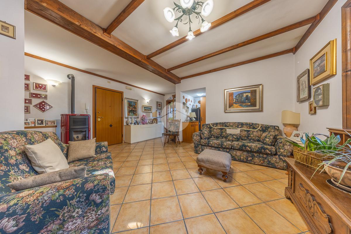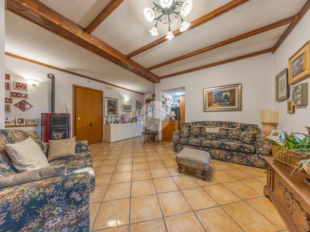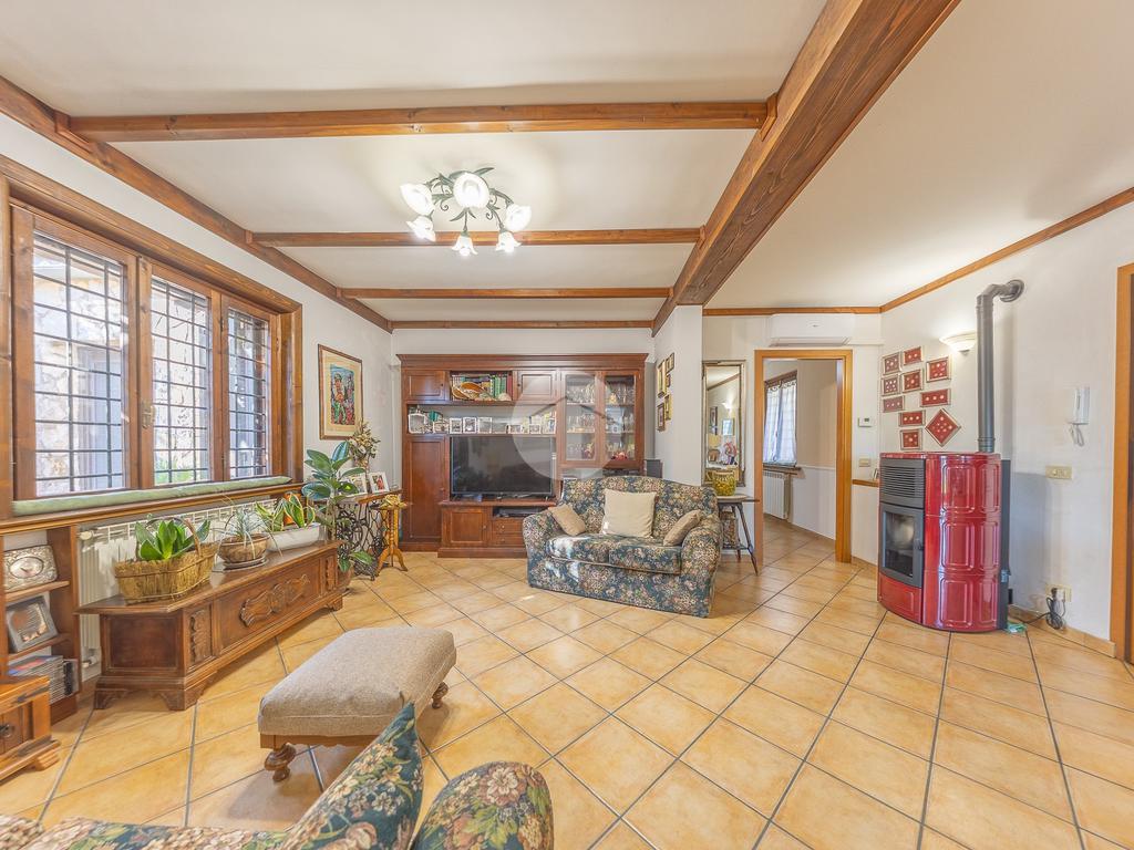 Attualmente, L'ingresso si apre su un ampio e luminoso soggiorno impreziosito da travi in legno e da una stufa a pellet, che donano all’ambiente un’atmosfera calda e accogliente. Proseguendo troviamo un servizio finestrato completo di box doccia e una confortevole camera da letto matrimoniale provvista di una cabina armadio e di un secondo servizio finestrato completo di vasca.