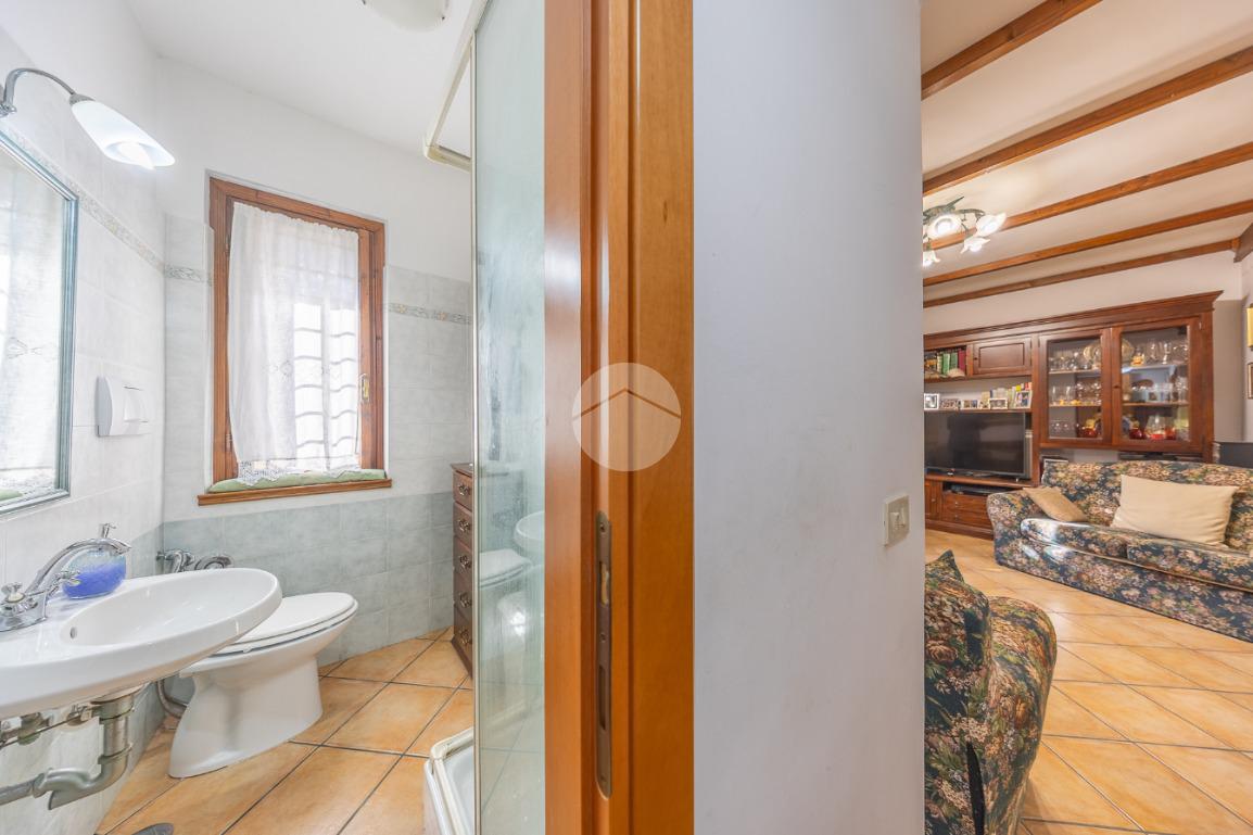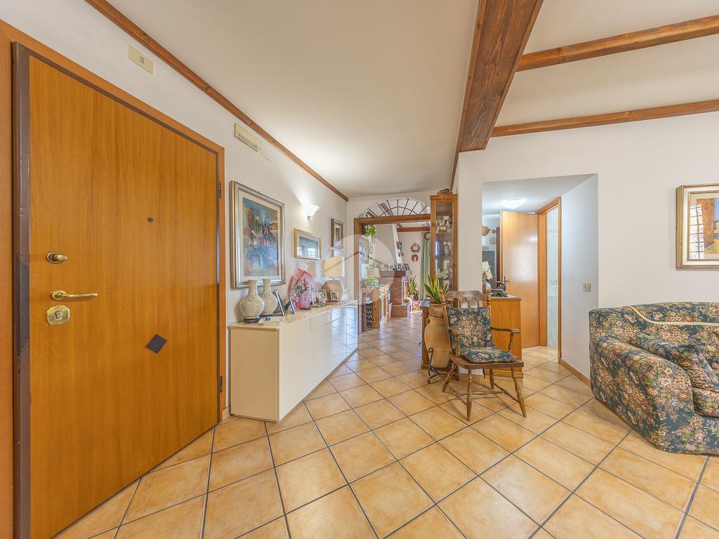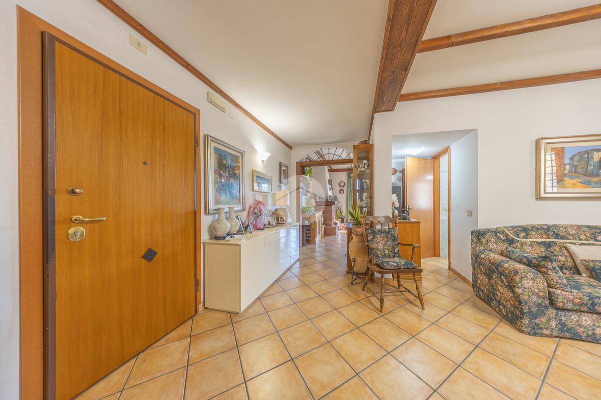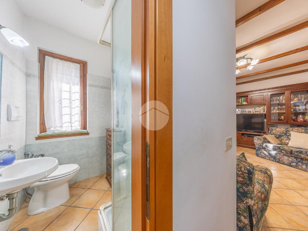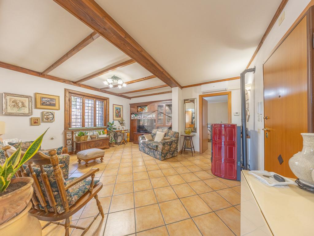 Attualmente, L'ingresso si apre su un ampio e luminoso soggiorno impreziosito da travi in legno e da una stufa a pellet, che donano all’ambiente un’atmosfera calda e accogliente. Proseguendo troviamo un servizio finestrato completo di box doccia e una confortevole camera da letto matrimoniale provvista di una cabina armadio e di un secondo servizio finestrato completo di vasca.